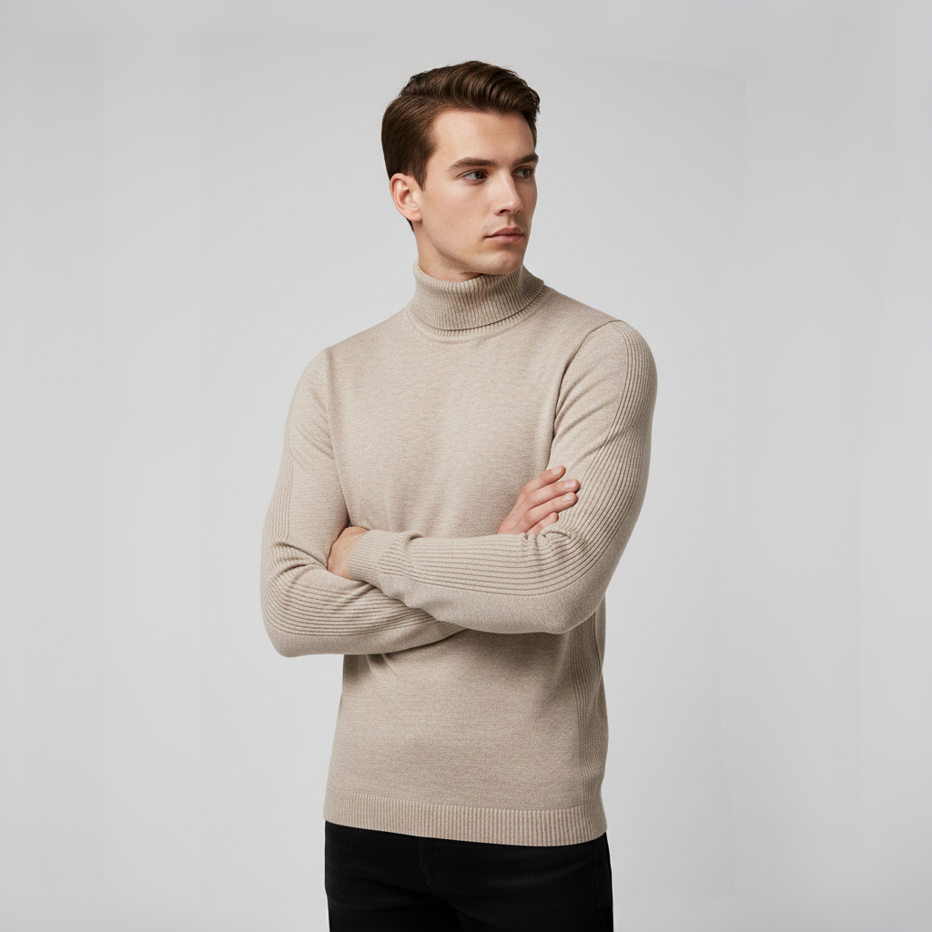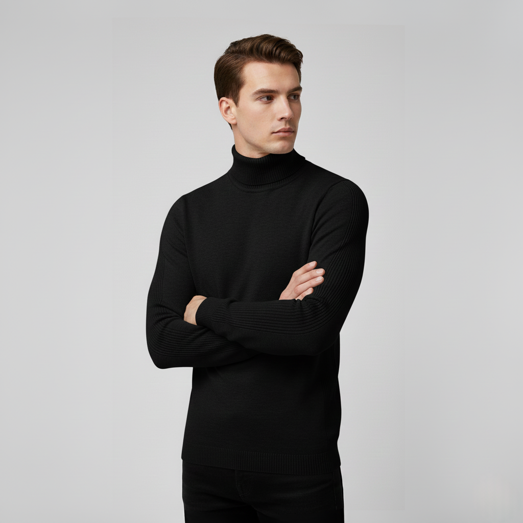Men's Cashmere Turtleneck - Slim Fit Rib Knit. Experience ultimate comfort with this long-sleeved, rib-knit turtleneck in soft cashmere. Perfect for a stylish and warm look. Slim fit design. A must-have in any wardrobe.